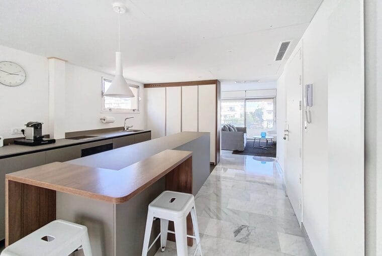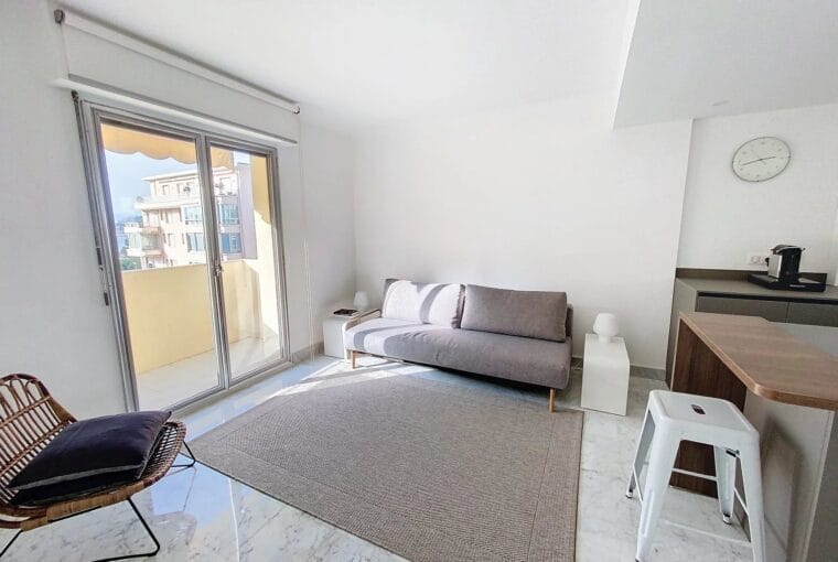 A vendre beau 2/3 pièces traversant, au 4ème étage, exposition Est-Ouest en parfait état, situé dans une rue calme, à proximité de la Croisette et des plages du Palm Beach.