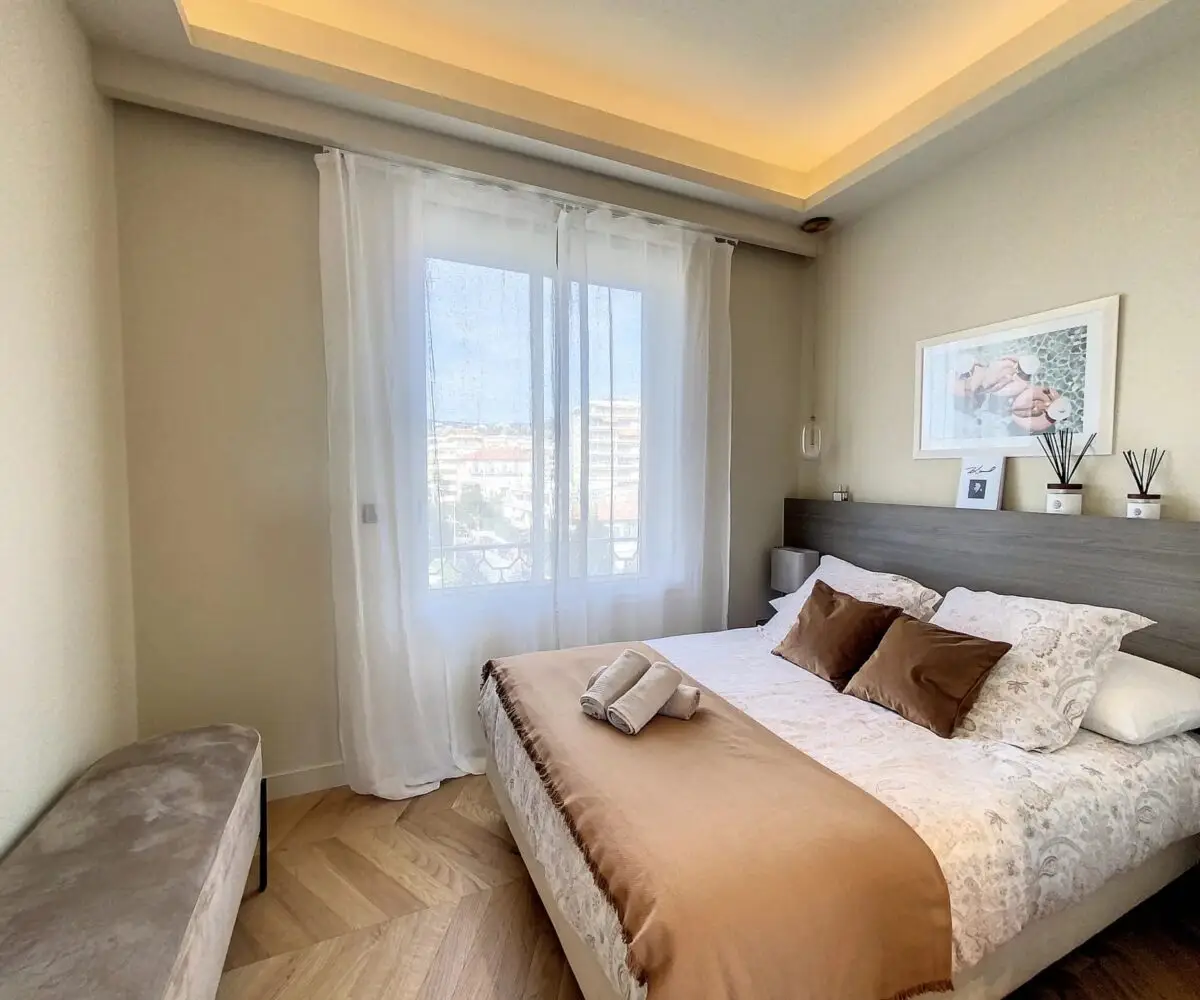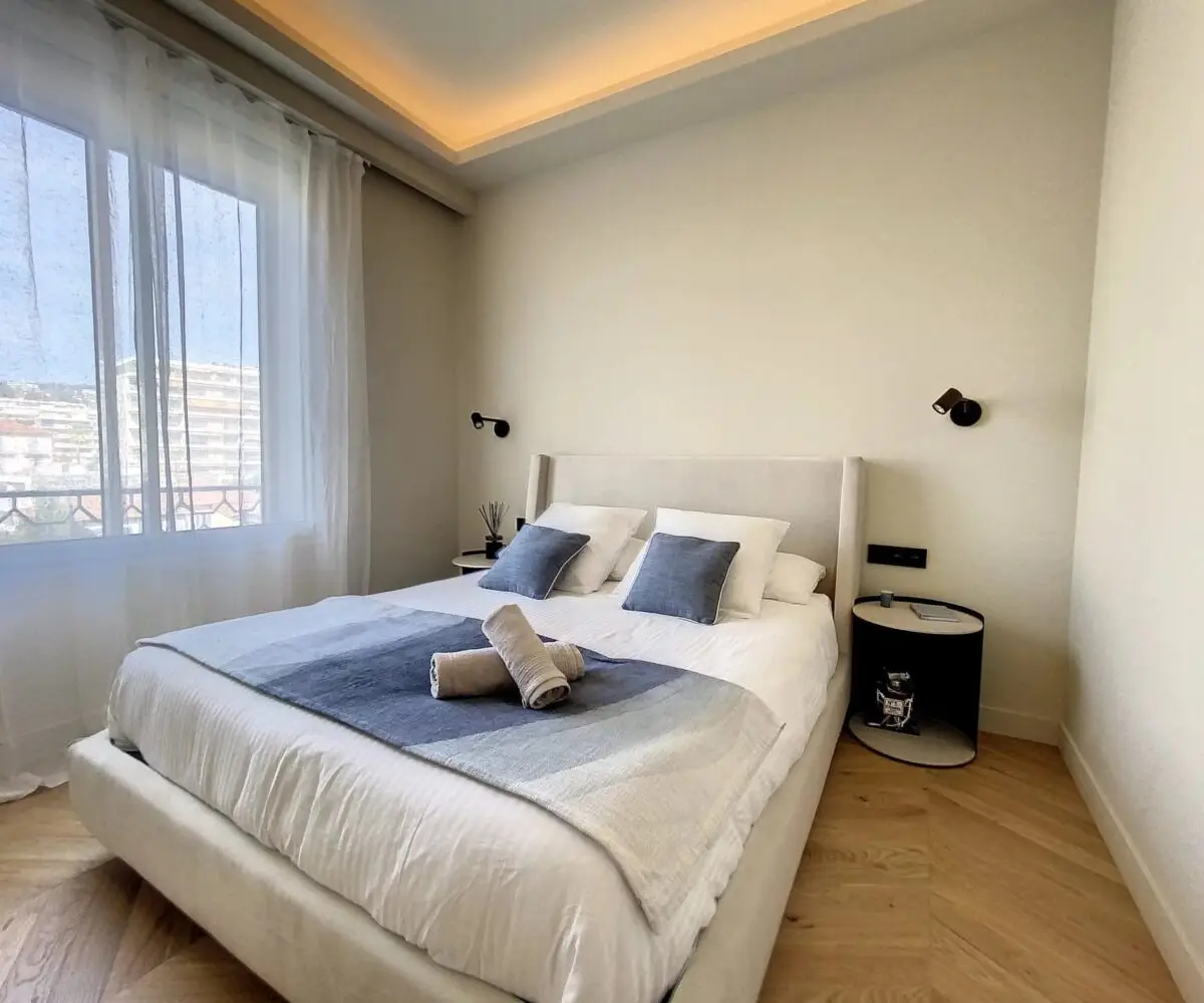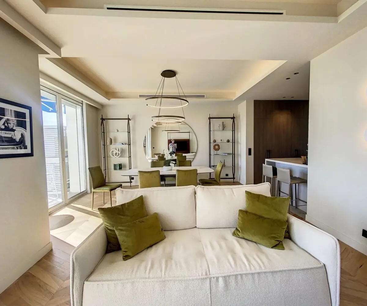 À vendre : Superbe appartement de 4 pièces de 98 m2, récemment rénové et offrant des prestations de haut standing, situé au 5ème étage dans une résidence sur la Croisette.