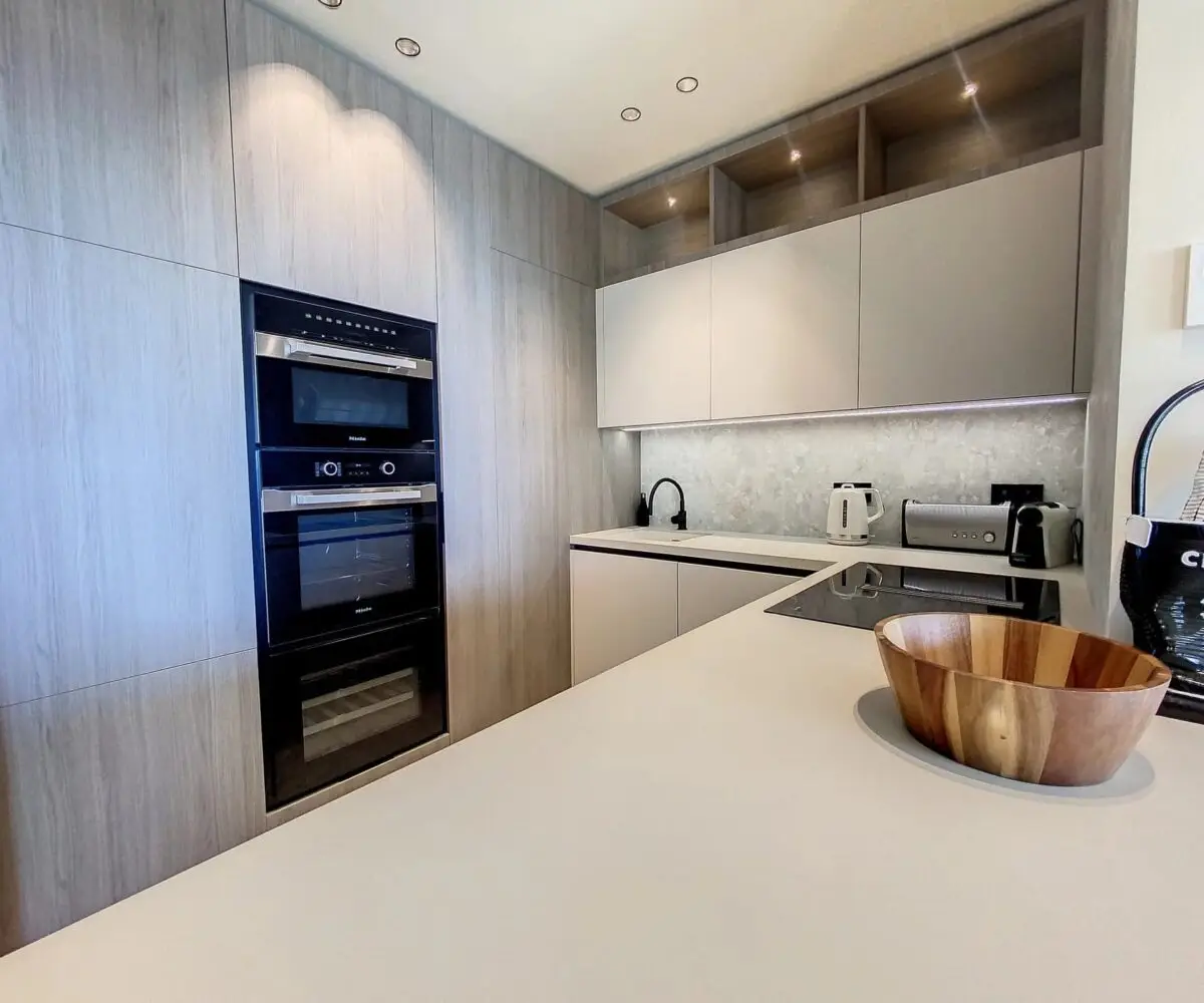 Avec une vue mer splendide, cet appartement se compose d’une vaste et lumineuse pièce de vie avec cuisine ouverte, de trois chambres en suite, ainsi que d’une terrasse de 10 m2.