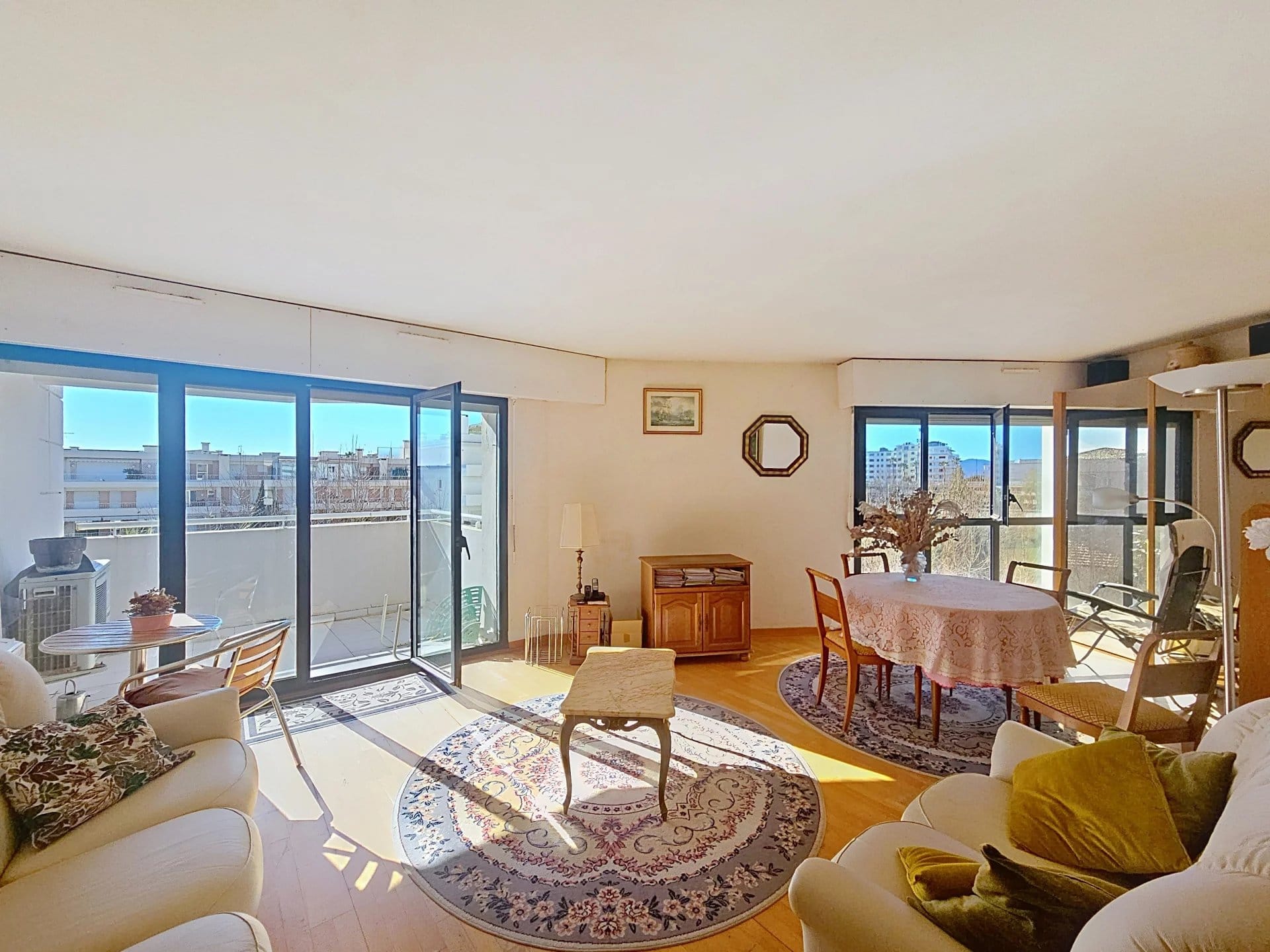 Appartement de 4 pièces en étage élevé avec de belles échappées mer. Beau séjour lumineux, cuisine indépendant équipée, 3 chambres, 1 salle de bain, 1 toilette indépendant, 1 dressing et 1 double garage.