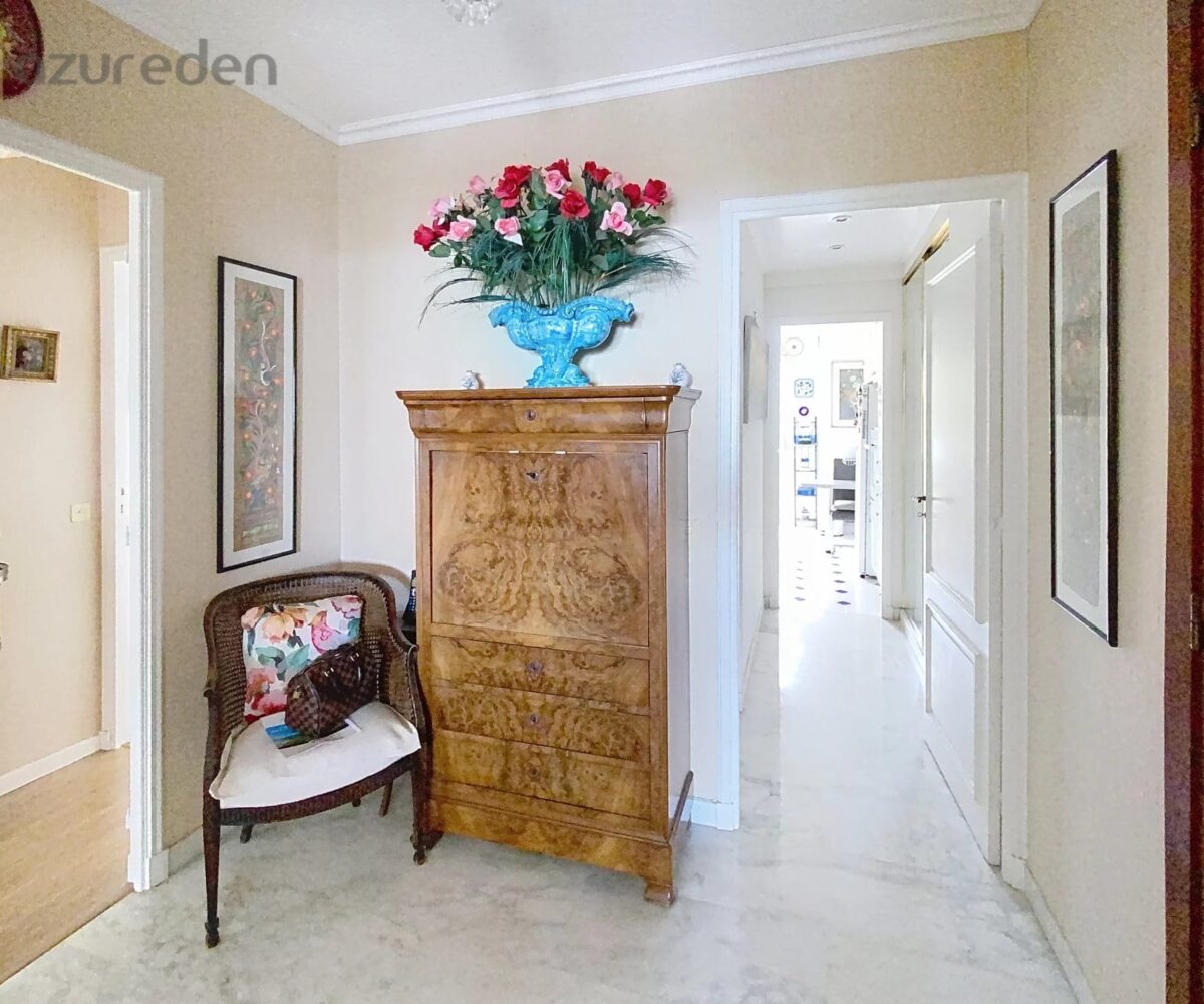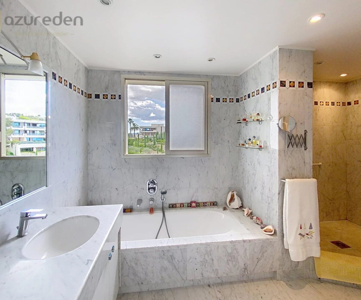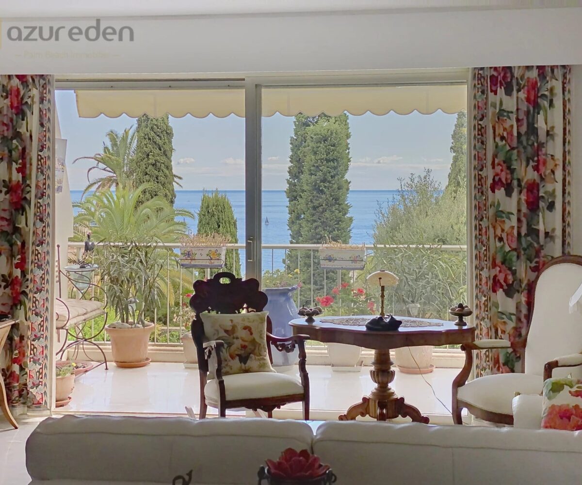 L’appartement séduit par ses volumes confortables, sa distribution fonctionnelle et sa superbe vue sur la mer et les jardins environnants. Il se compose d’un hall d’entrée, d’un séjour lumineux orienté plein Sud ouvrant sur une grande terrasse de 24 m² avec vue mer, idéal pour profiter du climat azuréen. La cuisine indépendante donne sur un balcon côté Nord.