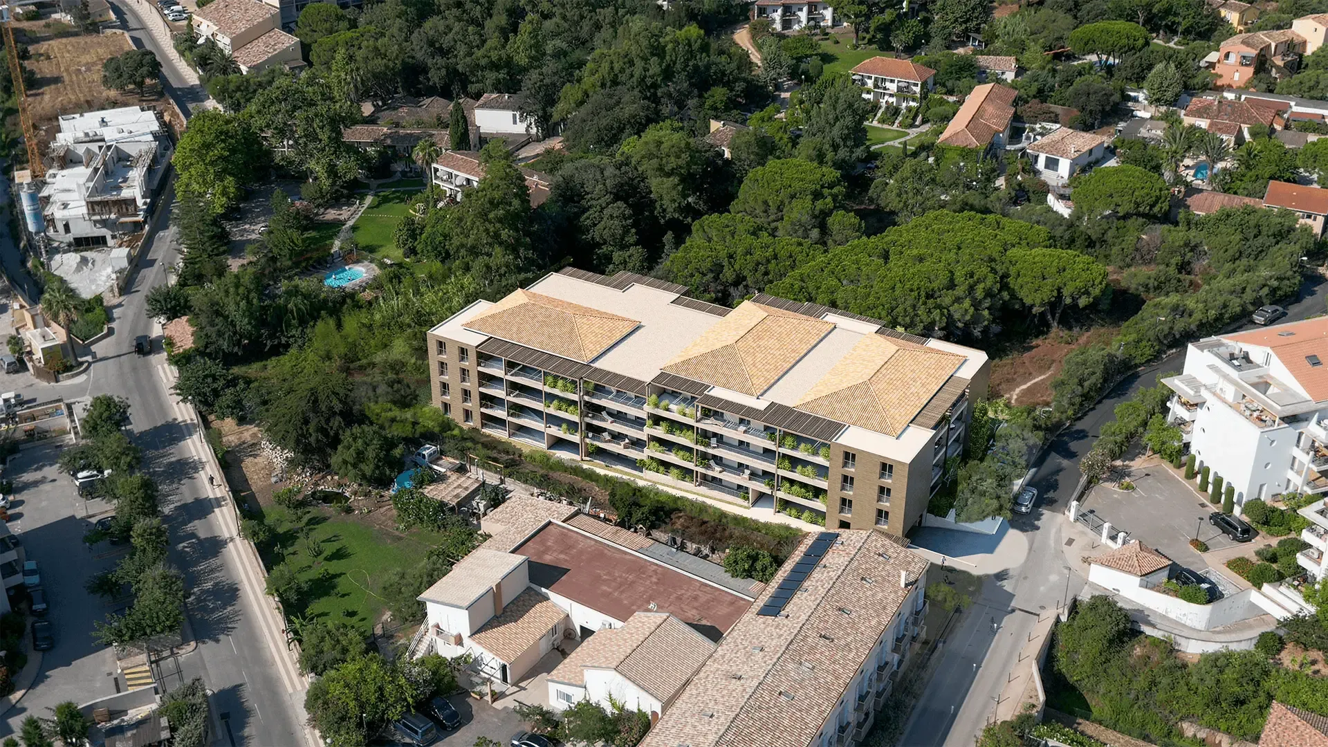 Avec 56 appartements rĂ©partis sur 2 bâtiments (en R+3), la rĂ©sidence “Villa Printemps” vient parfaitement s’intĂ©grer au milieu des pins avec son bardage bois et son architecture contemporaine. Avec son emplacement premium, la rĂ©sidence offre des vues sur la Citadelle, sur les montagnes environnantes et mĂŞme quelques aperçus mer.