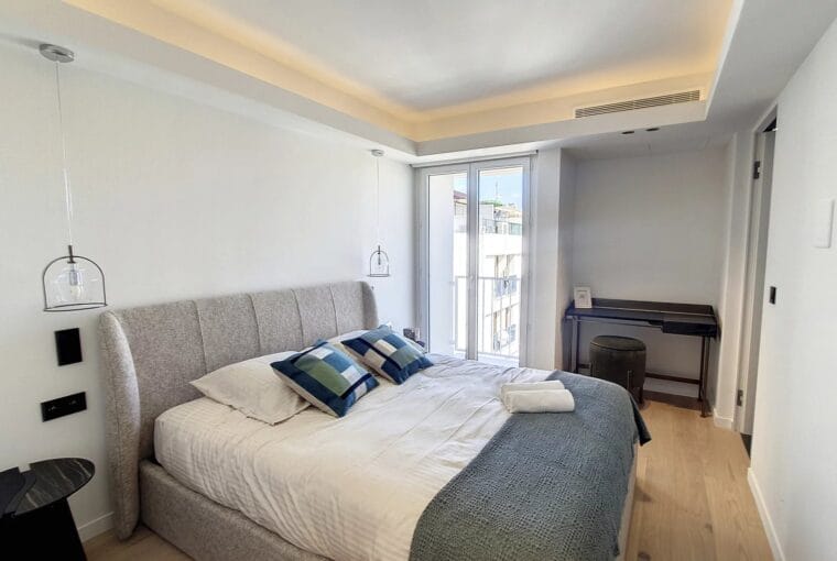 À vendre : Splendide appartement traversant de 108m², entièrement rénové, au 6ème étage d’une très belle résidence de la Pointe Croisette/Palm Beach – Superbe vue mer panoramique face à Bijou Plage.