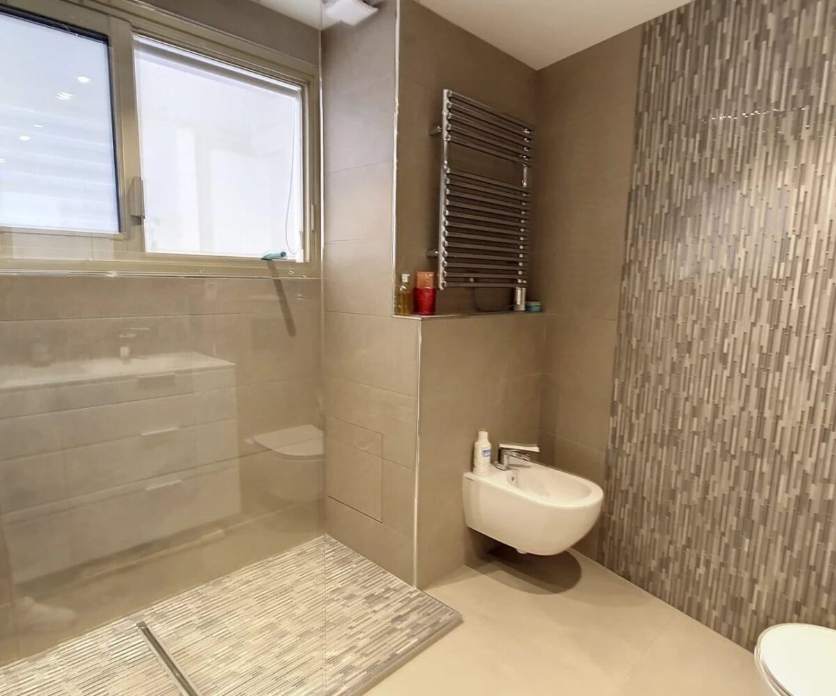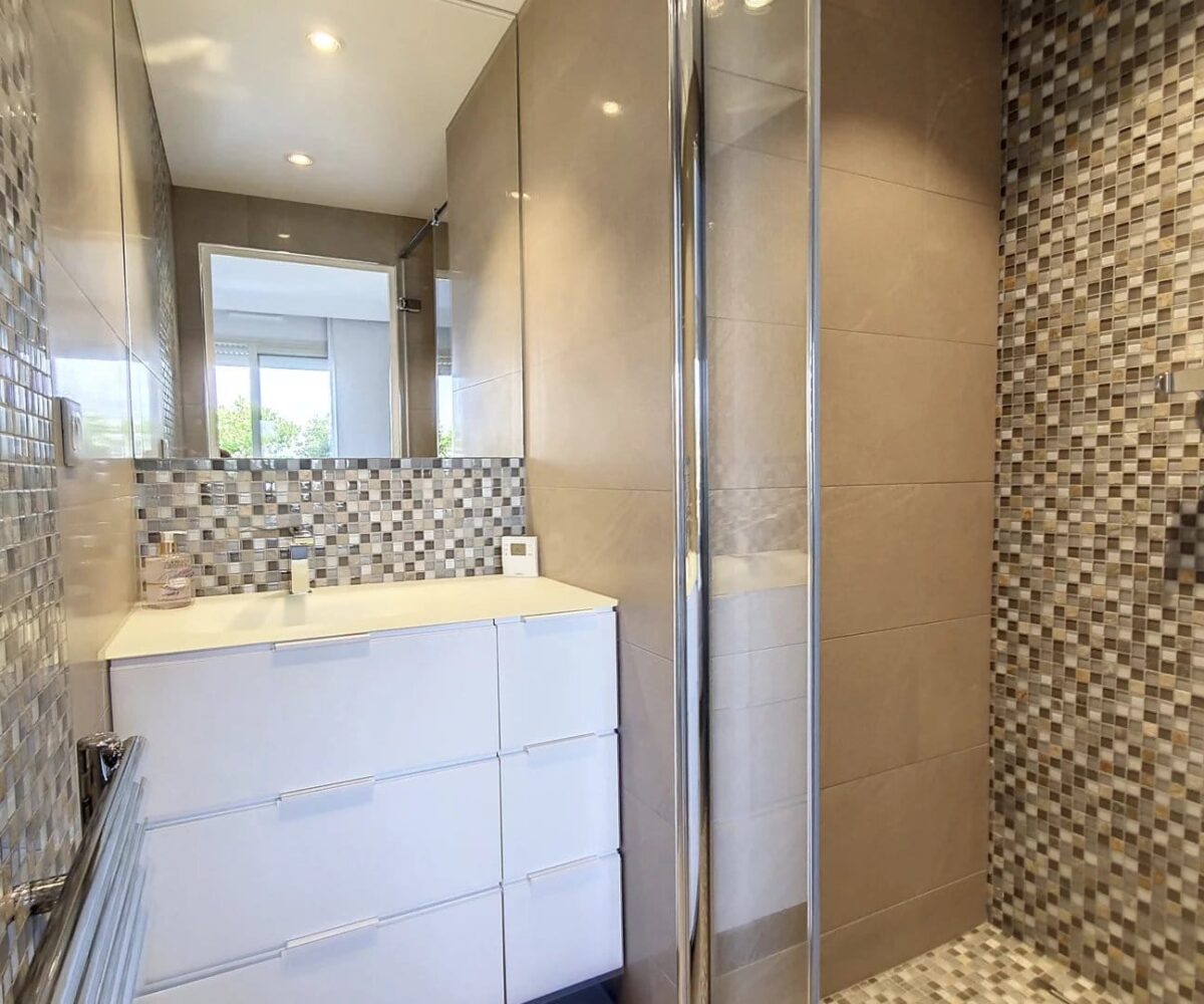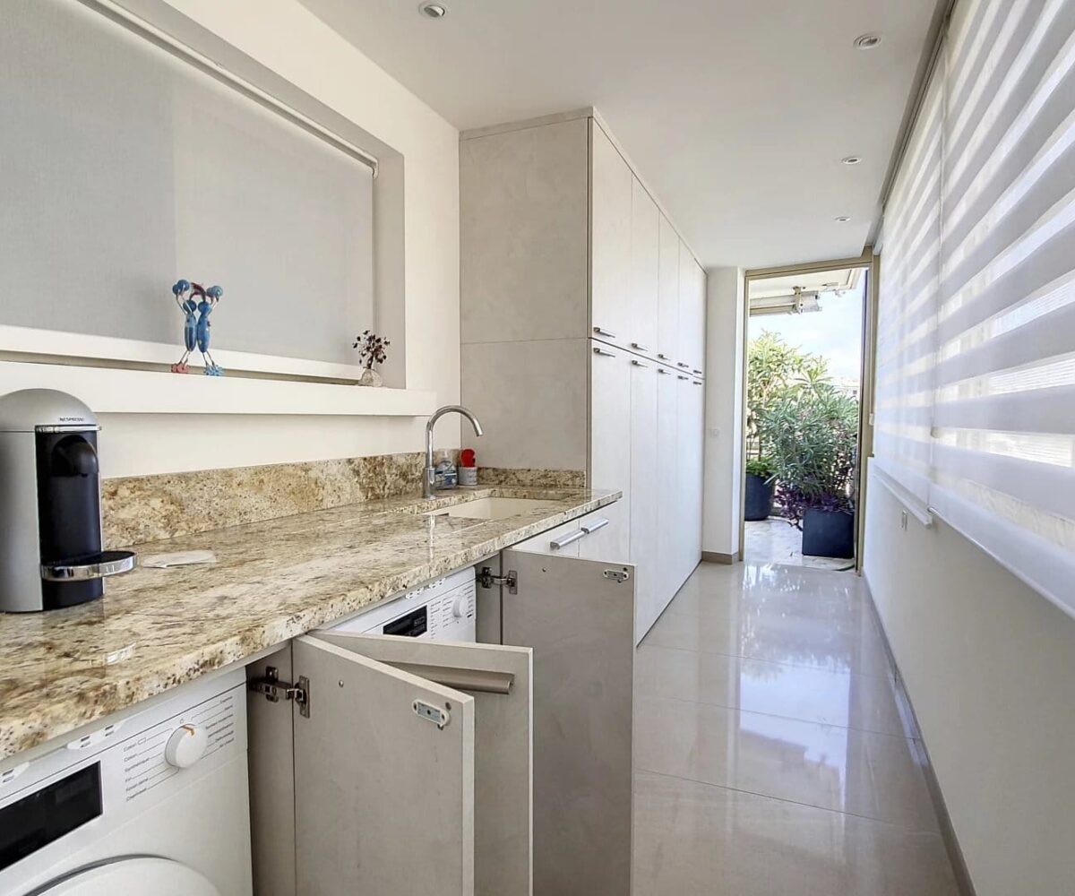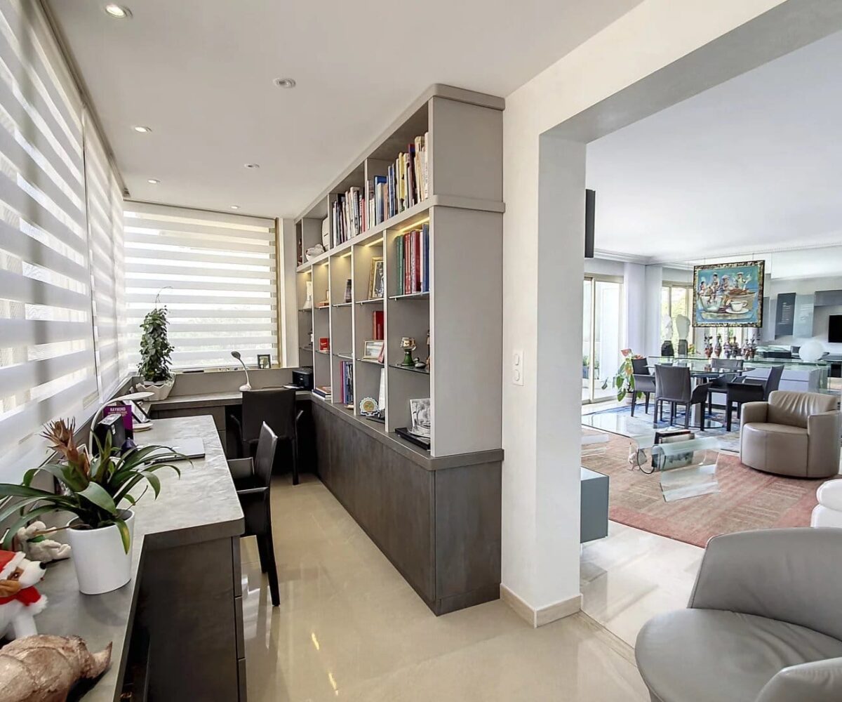 Ce magnifique T3/T4 de 101m² se compose d’une entrée, d’un vaste séjour donnant sur une très belle terrasse de 35m², d’une cuisine équipée (donnant également sur la terrasse Est), d’une buanderie et d’un grand bureau/bibliothèque. Côté Ouest, 2 chambres en suite, donnant sur une vaste terrasse de 32m², avec chacune leur salle de douche et d’un toilette indépendant.