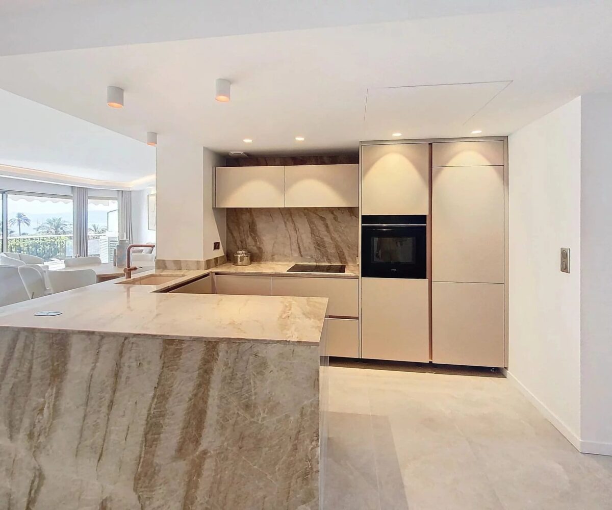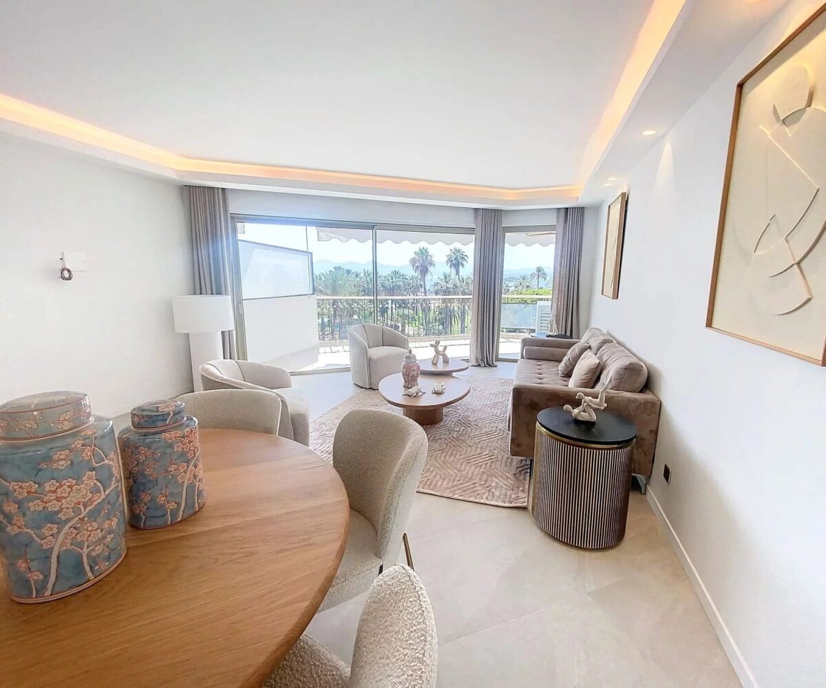 A vendre à Cannes dans le quartier Pointe Croisette, dans une résidence de standing avec gardien : un bel appartement de type T4, entièrement rénové en 2024, avec spacieuse terrasse sud-ouest et sa vue mer.