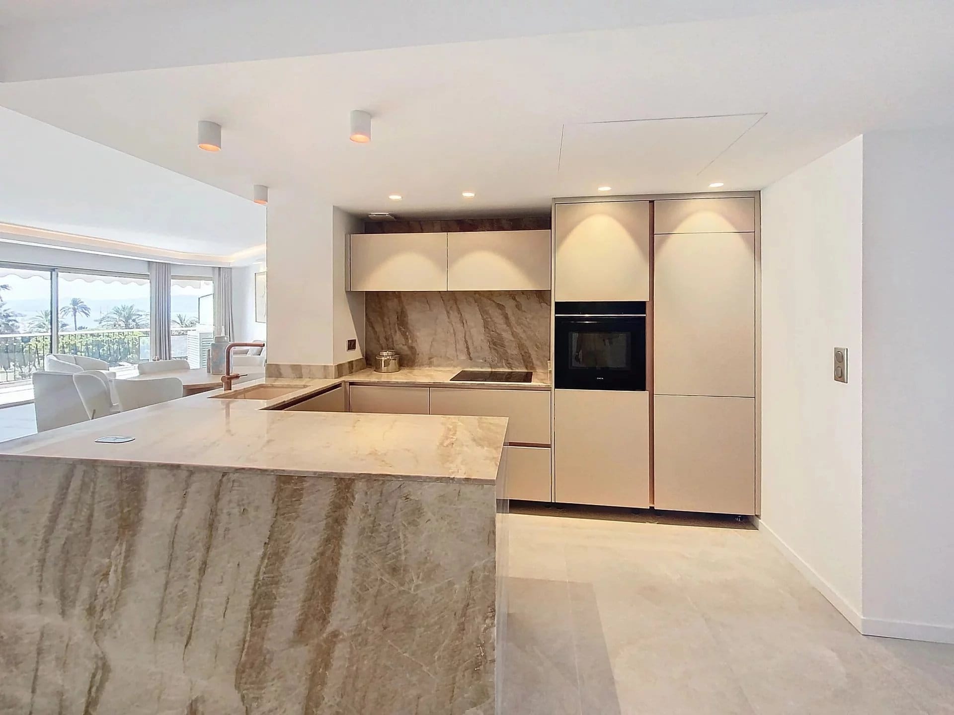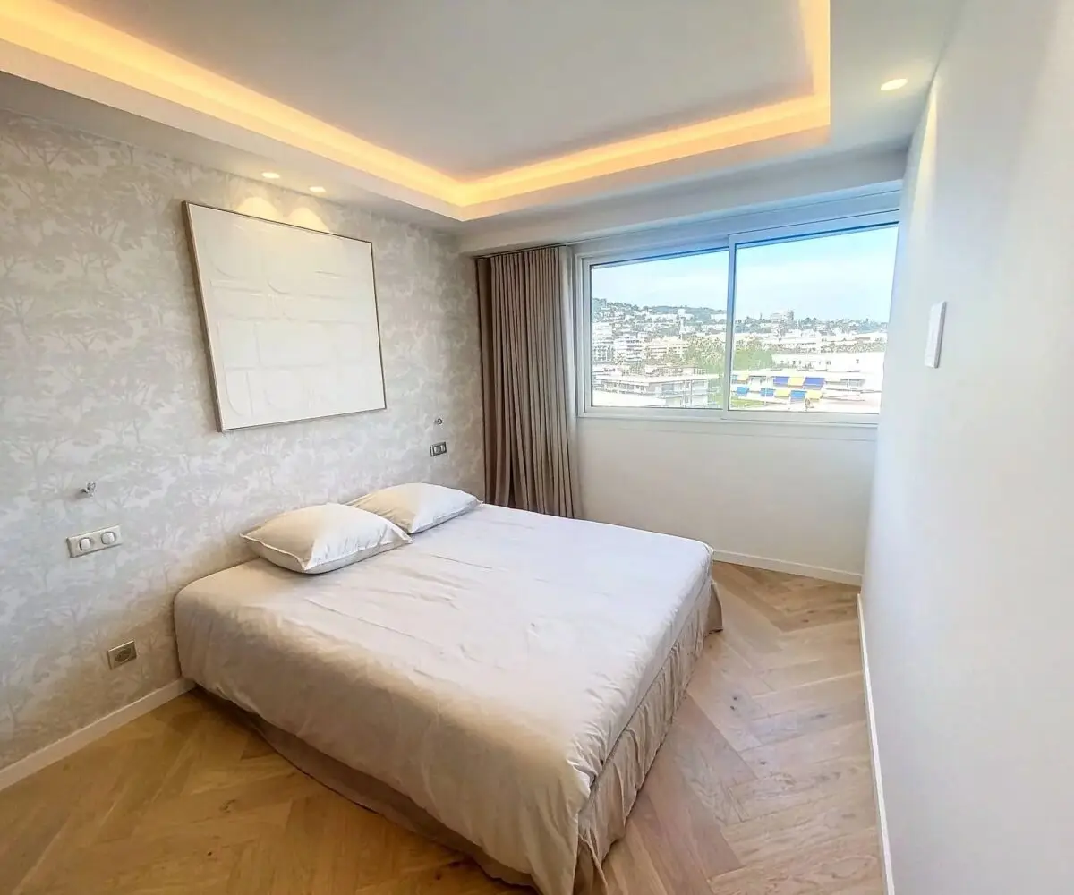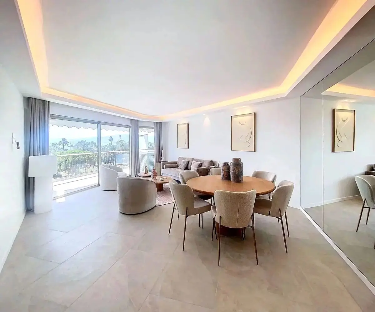 A vendre à Cannes dans le quartier Pointe Croisette, dans une résidence de standing avec gardien : un bel appartement de type T4, entièrement rénové en 2024, avec spacieuse terrasse sud-ouest et sa vue mer.