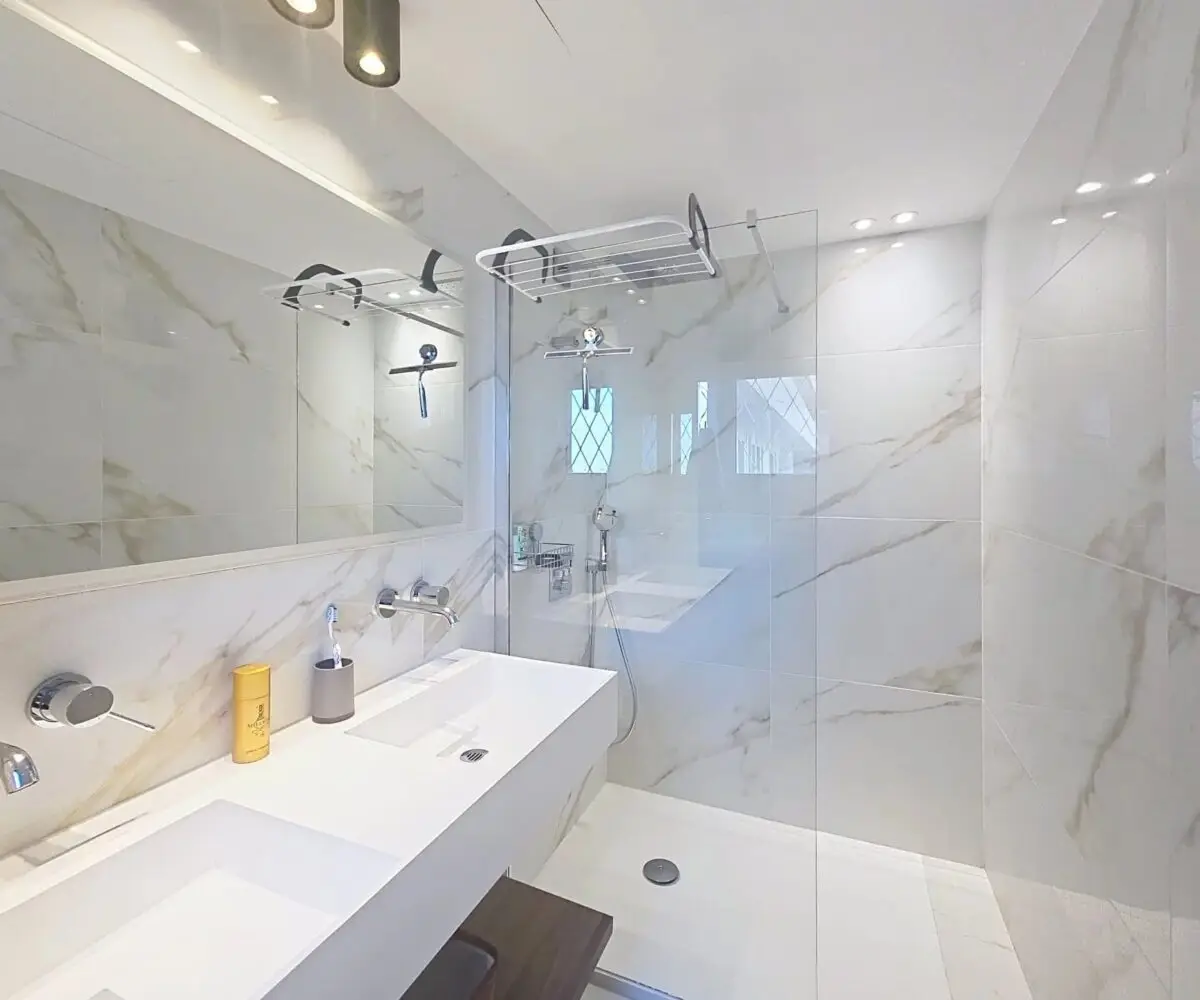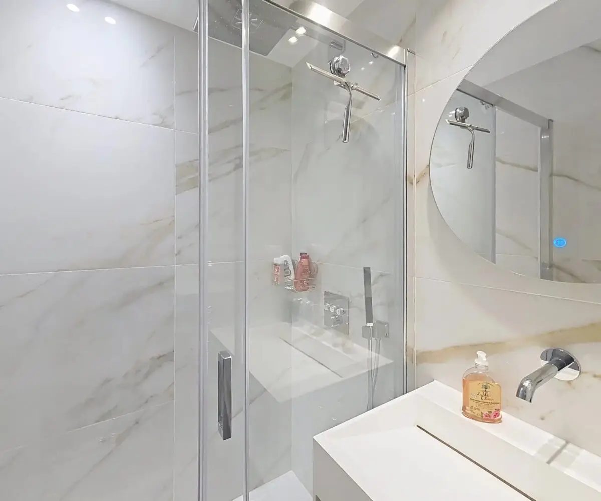 Cet appartement, rénové avec des matériaux haut de gamme, propose une belle pièce de vie avec cuisine ouverte orientée Ouest (donnant sur une large terrasse de 20m²), de 3 chambres en suite avec chacune leur salle de bain (dont 2 chambres avec vue mer) et d’un toilette indépendant.