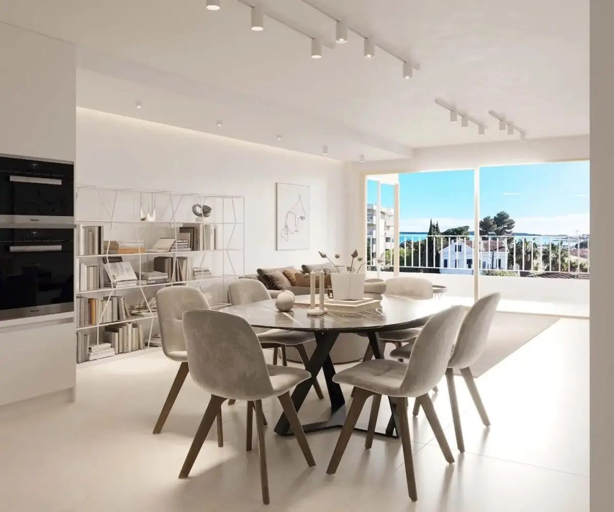A vendre, superbe appartement T4 récemment rénové, idéalement situé dans une rue calme du quartier du Mouré Rouge, avec une magnifique terrasse couverte plein sud de 20m² et sa vue féérique sur la mer et les Îles de Lérins.