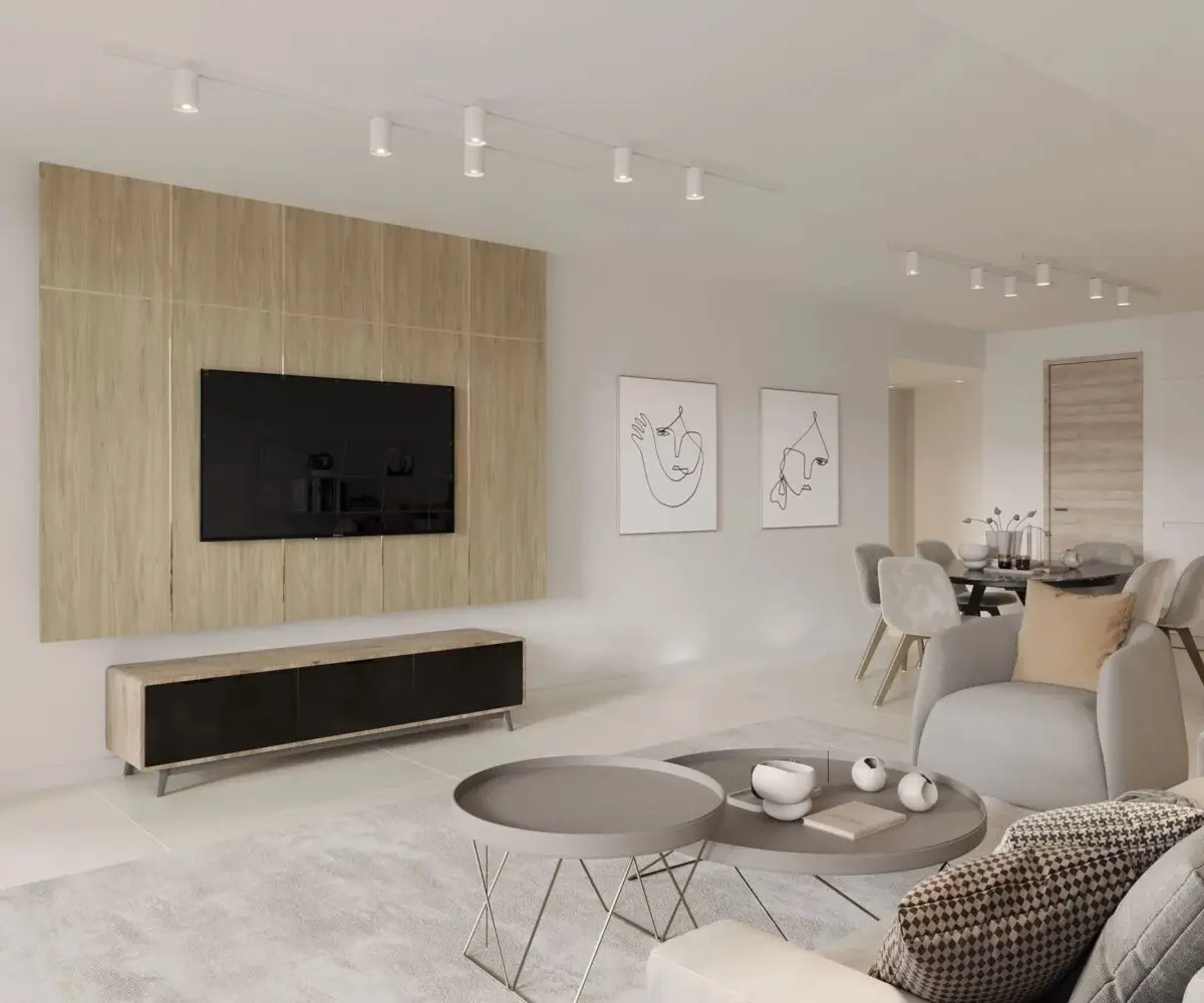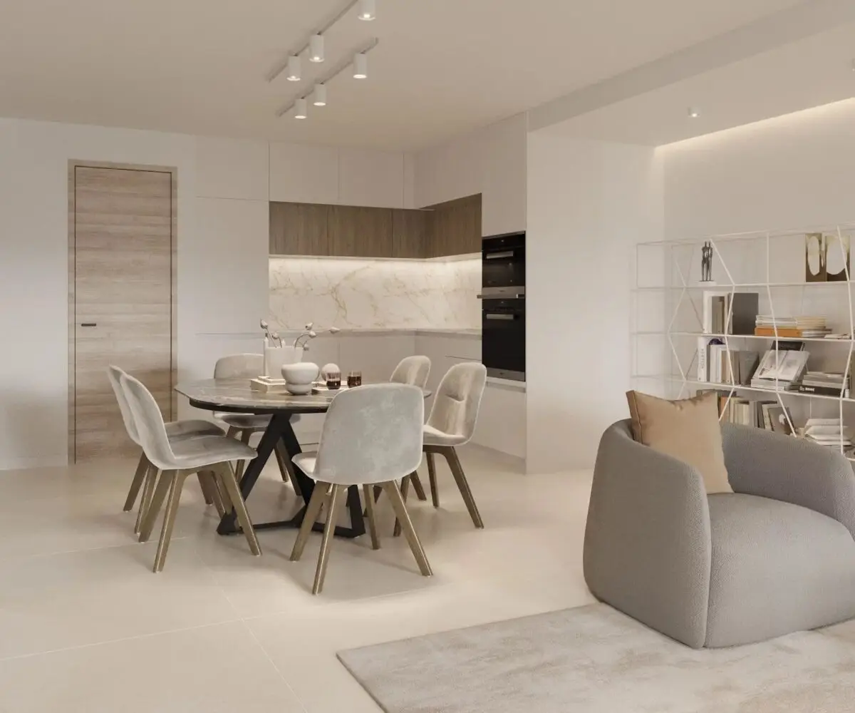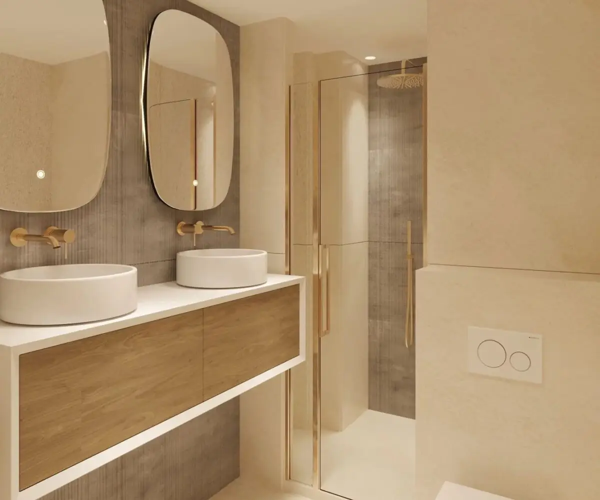 Cet appartement de 4 pièces est composé d’une vaste pièce de vie ouvrant sur la terrasse, d’une cuisine ouverte équipée et de 3 chambres en suite avec chacune sa salle de douche.