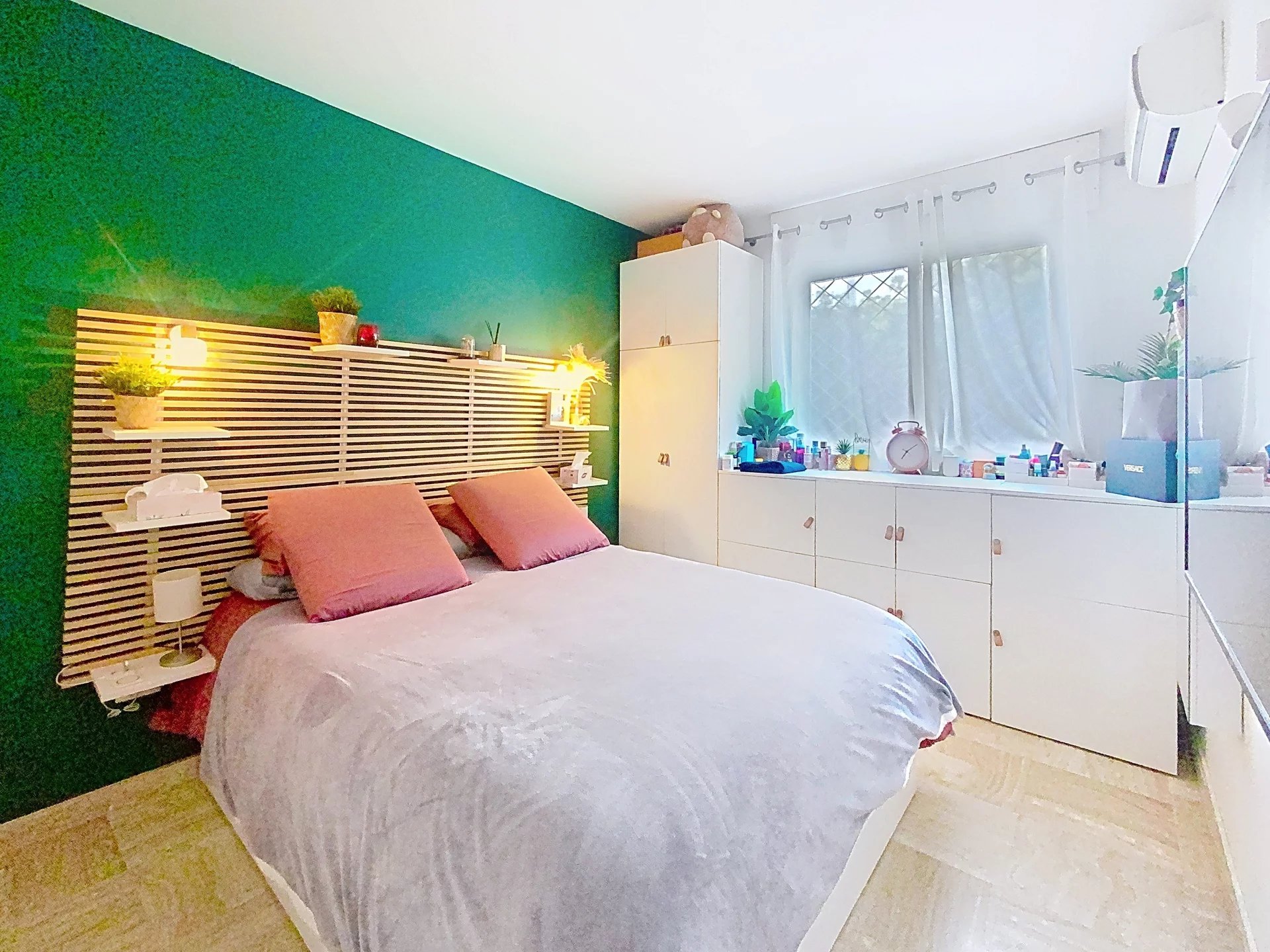 L’espace nuit, bien distinct de la pièce de vie grâce à la configuration traversante de l’appartement, se situe côté Nord, garantissant fraîcheur et tranquillité. Il comprend deux chambres confortables, dont l’une bénéficie d’un accès direct à une loggia, idéale pour aménager un espace complémentaire selon vos besoins : coin lecture, bureau ou rangement supplémentaire. Les volumes sont bien proportionnés et permettent une installation aisée.