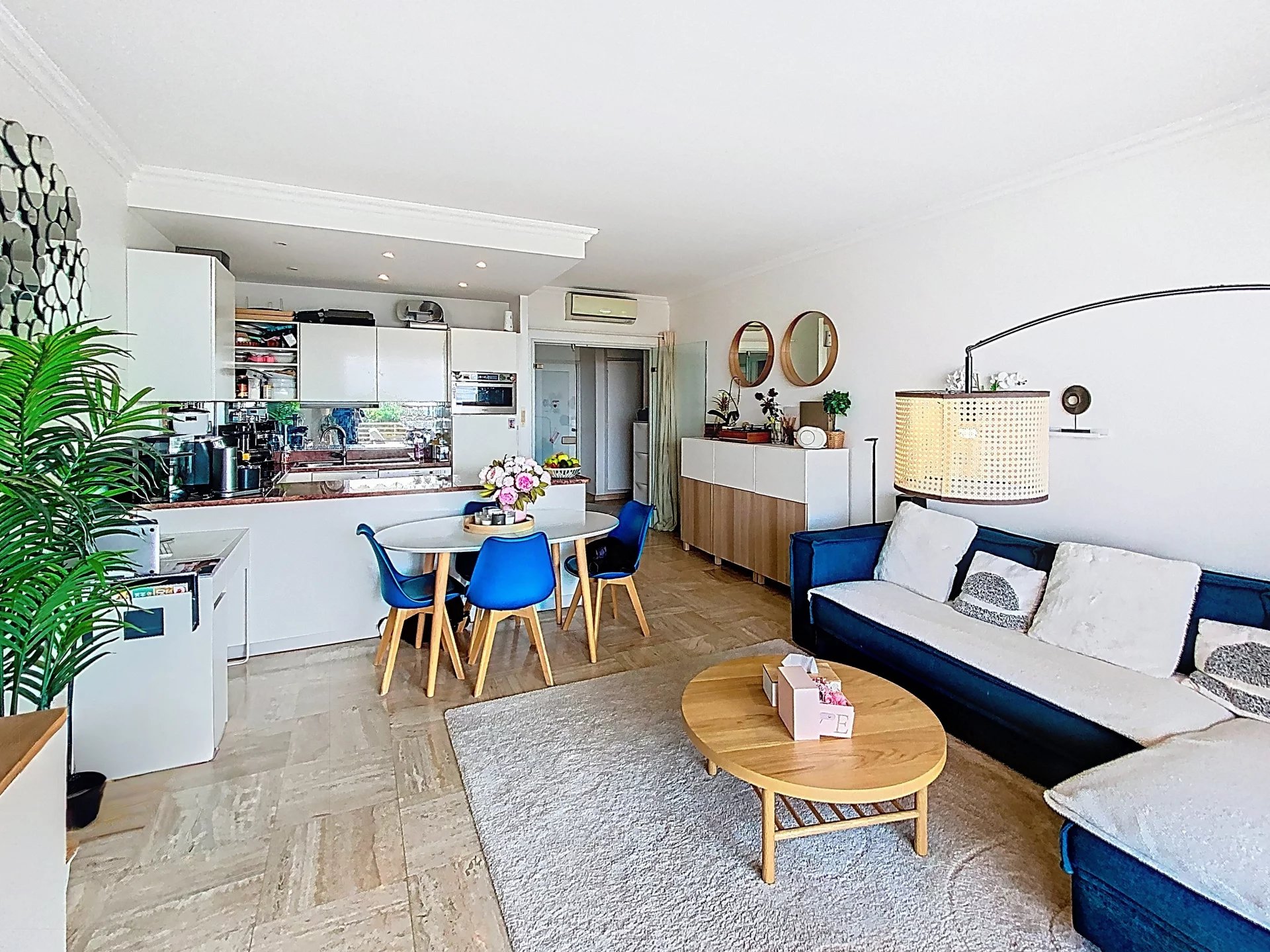 Idéalement situé dans le très recherché quartier de la Basse Californie à Cannes, cet appartement 3 pièces traversant de 66 m² prend place au sein d’une résidence de standing appréciée pour son environnement résidentiel et sa proximité immédiate des commodités et du centre-ville. Niché au 1er étage, il bénéficie d’une luminosité remarquable ainsi que d’une vue mer panoramique particulièrement séduisante.