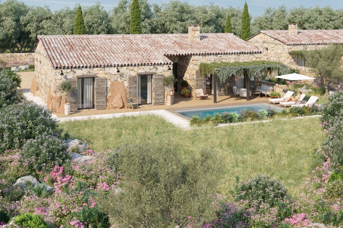 Revêtues entièrement de pierre pour une architecture authentique, chaque bergerie dispose de sa piscine privée et son jardin aux essences locales.