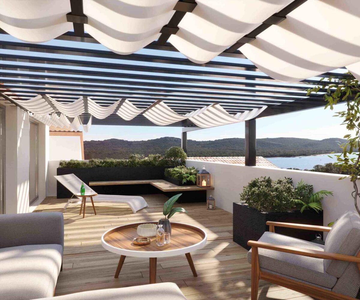 Du T1 au T3, les appartements sont tous prolongées par une terrasse ou un balcon et bénéficient de prestations soignées : climatisation réversible, cuisine aménagée, ameublement moderne, place de parking. La résidence dispose également d’une piscine et d’un accès direct à la plage de sable fin et à un ponton privé.