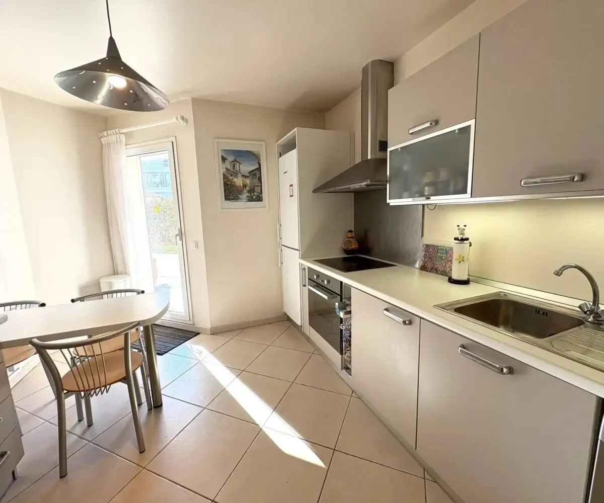 D’une superficie de 77 m², l’appartement se distingue par ses beaux volumes et ses extérieurs généreux : une grande terrasse d’angle de 38 m² prolonge le séjour, donnant accès à un magnifique jardin privatif d’environ 200 m², idéal pour profiter du climat azuréen en toute intimité.