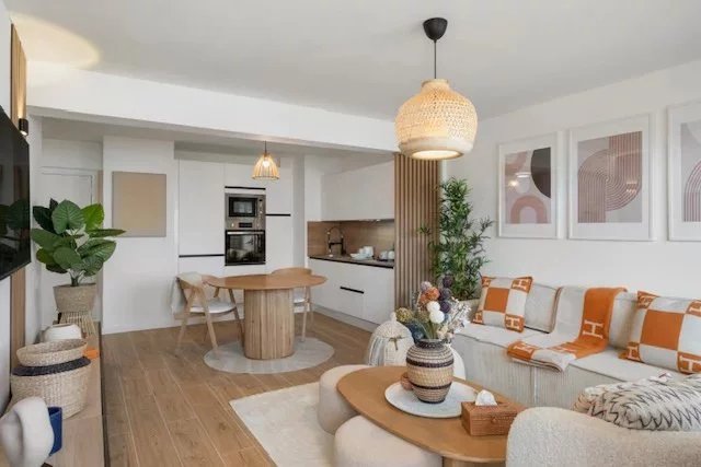 DĂšs lâentrĂ©e, vous dĂ©couvrirez un hall accueillant qui sâouvre sur une agrĂ©able piĂšce de vie baignĂ©e de lumiĂšre. La cuisine, ouverte sur le sĂ©jour, sâintĂšgre parfaitement Ă lâespace et sĂ©duit par son design moderne et Ă©purĂ©. EntiĂšrement Ă©quipĂ©e et amĂ©nagĂ©e avec goĂ»t, elle offre un espace convivial idĂ©al pour recevoir ou profiter de moments de dĂ©tente au quotidien.