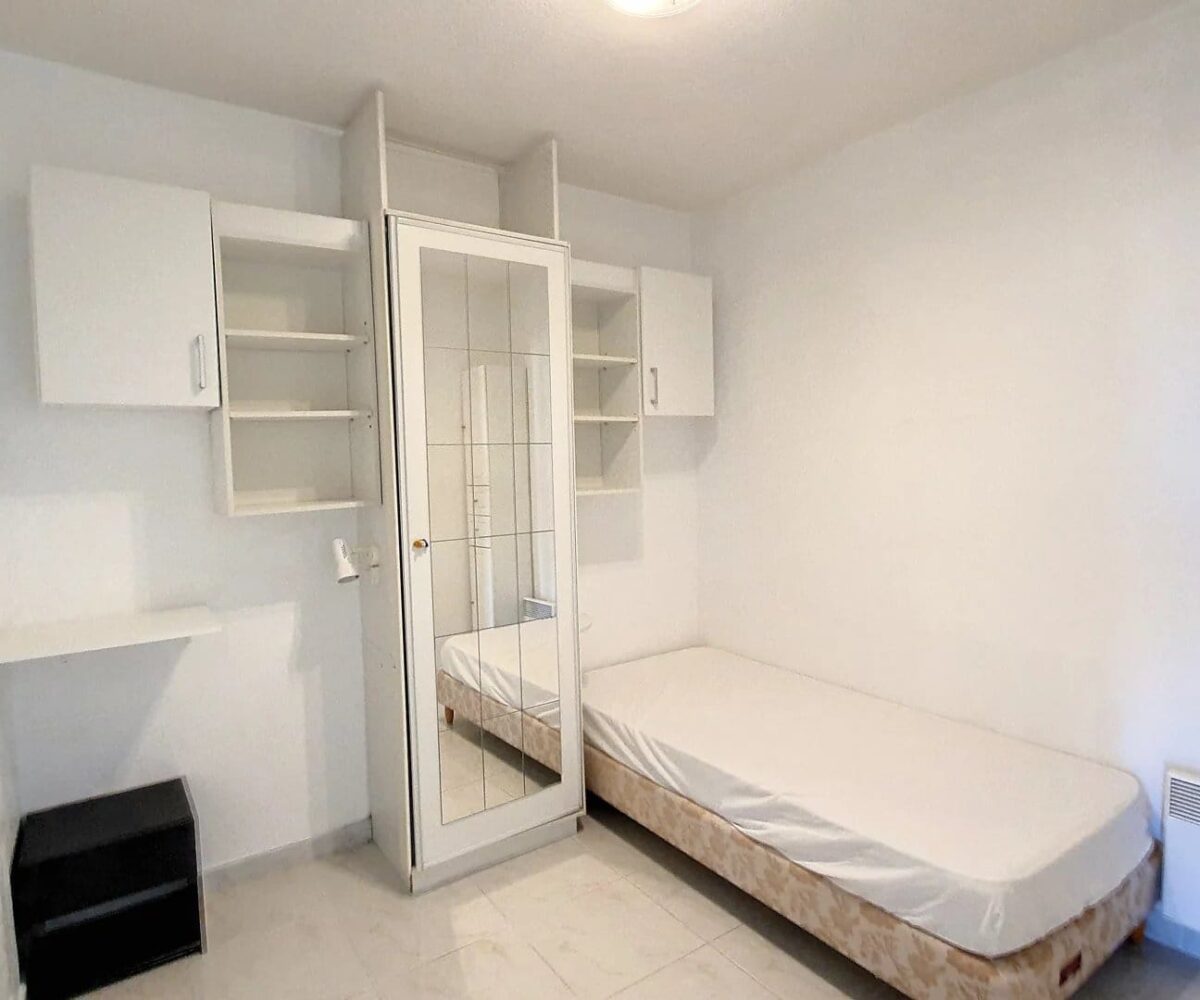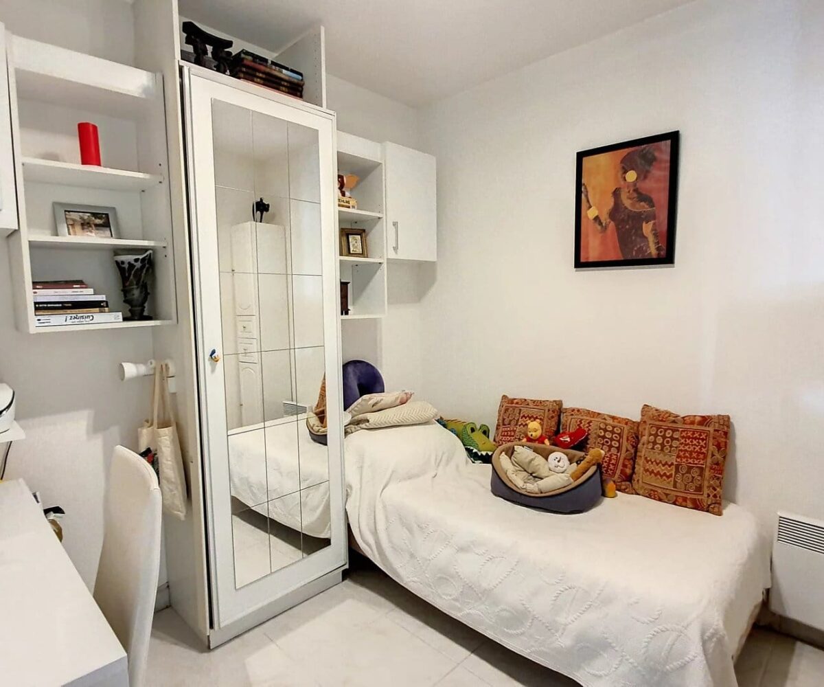 Il se compose d’une entrée, d’un vaste salon/salle à manger avec cuisine ouverte, 2 chambres en suite (l’une avec salle de bain, l’autre avec salle de douche), d’1 bureau (ou chambre d’appoint), 2 toilettes indépendants et de nombreux rangements.