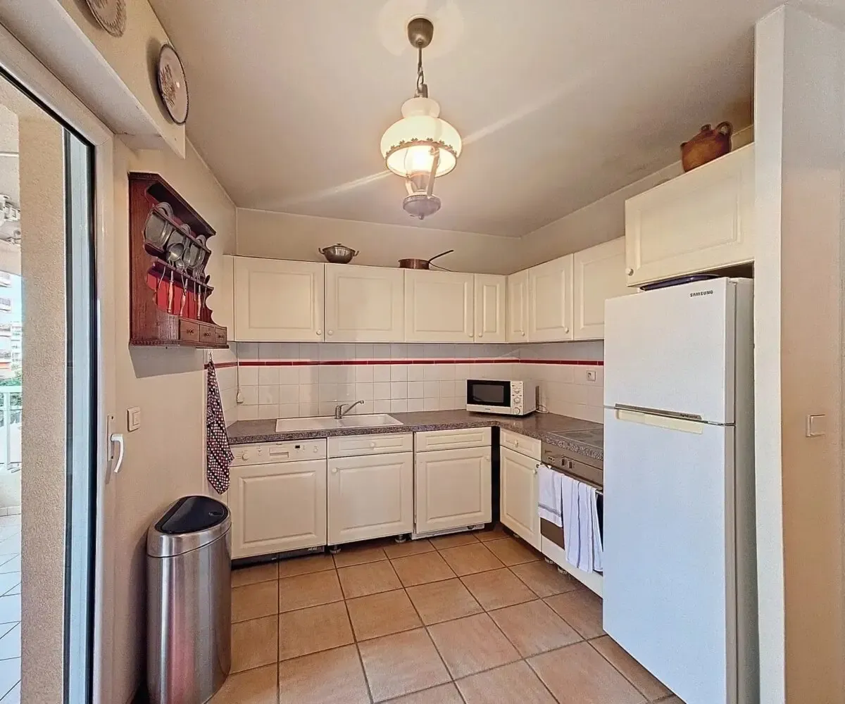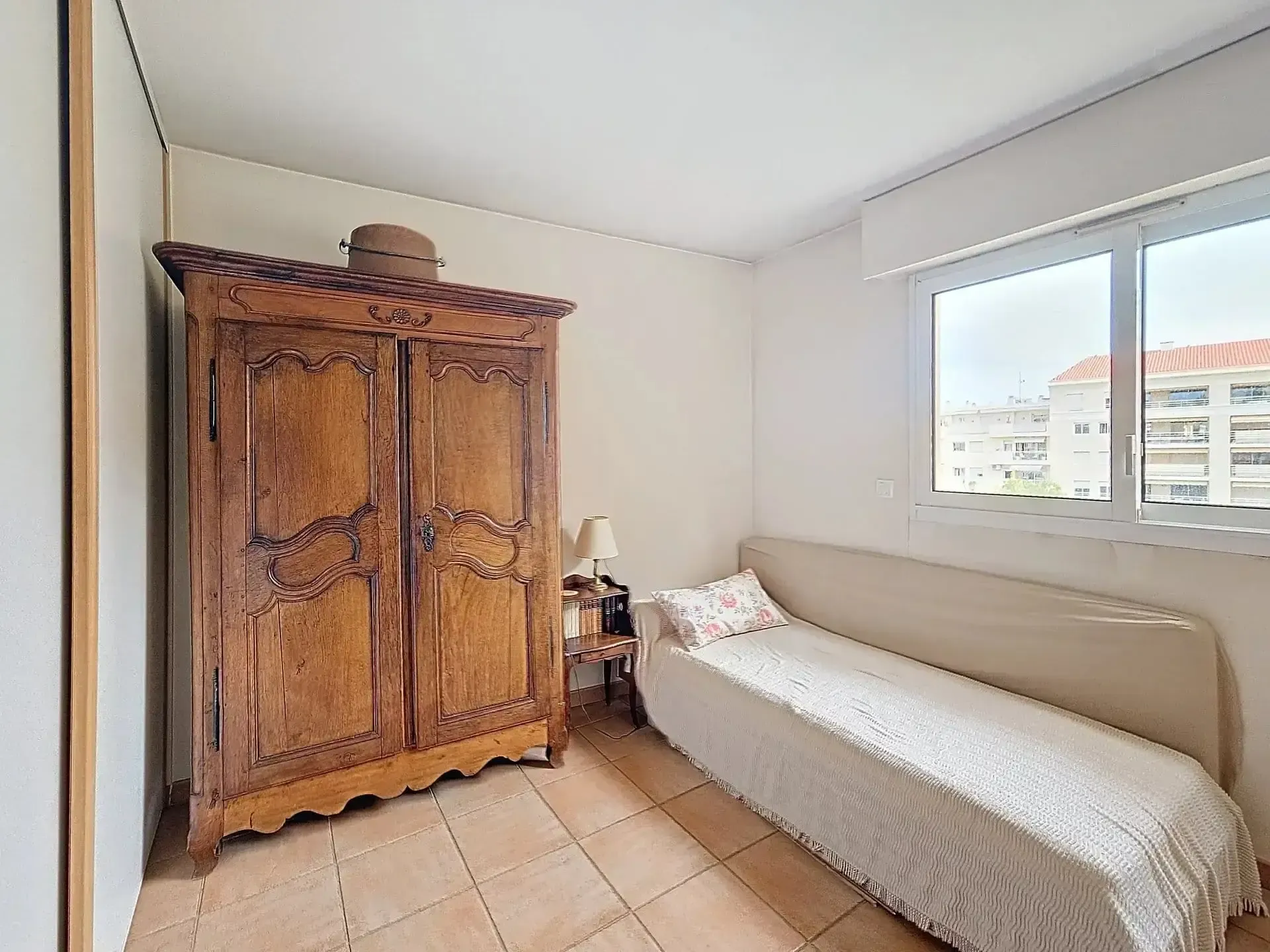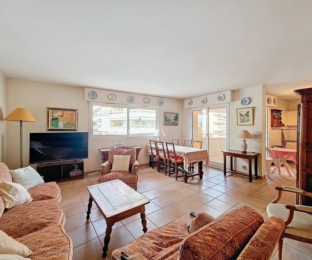 A vendre à Cannes dans le quartier du Palm Beach, à quelques pas du Port du Mouré Rouge, T4 traversant avec terrasse et garage.