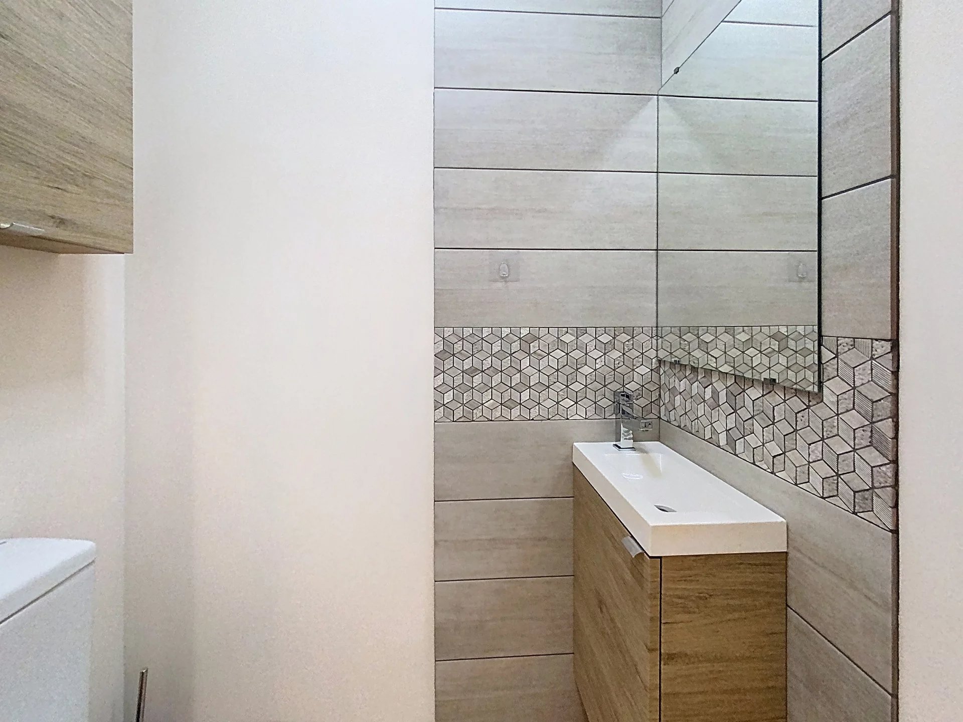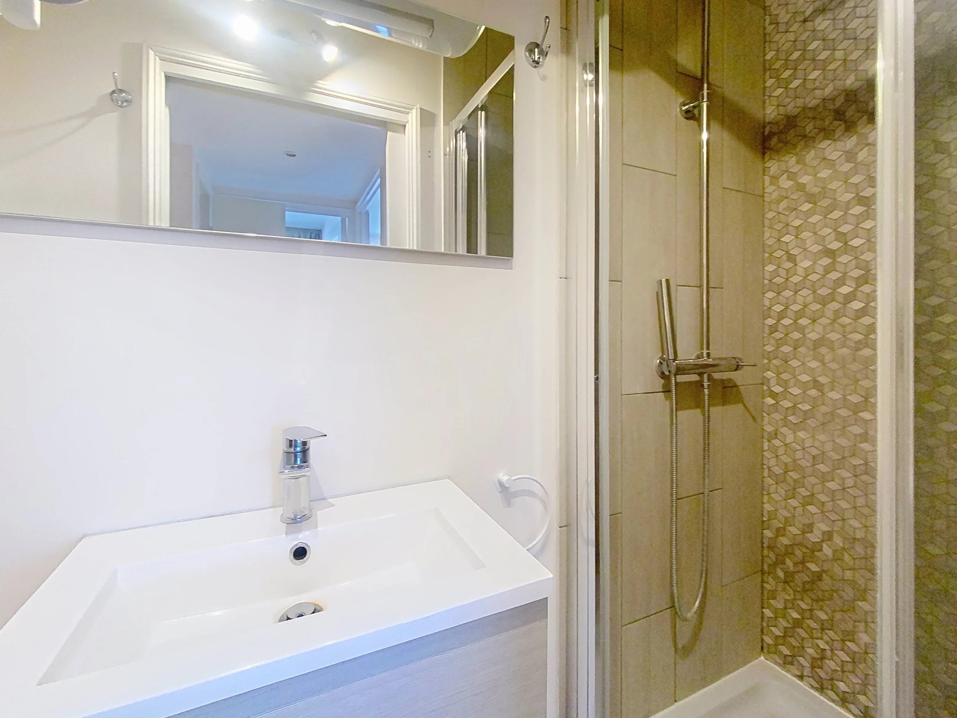 La partie nuit se compose de deux chambres élégantes, toutes deux dotées d’un accès direct à la terrasse, offrant calme et intimité. La suite bénéficie d’une salle de bain raffinée, tandis qu’une salle de douche indépendante complète l’agencement, répondant aux exigences d’un mode de vie moderne. Des toilettes indépendants viennent parfaire le confort de l’appartement.