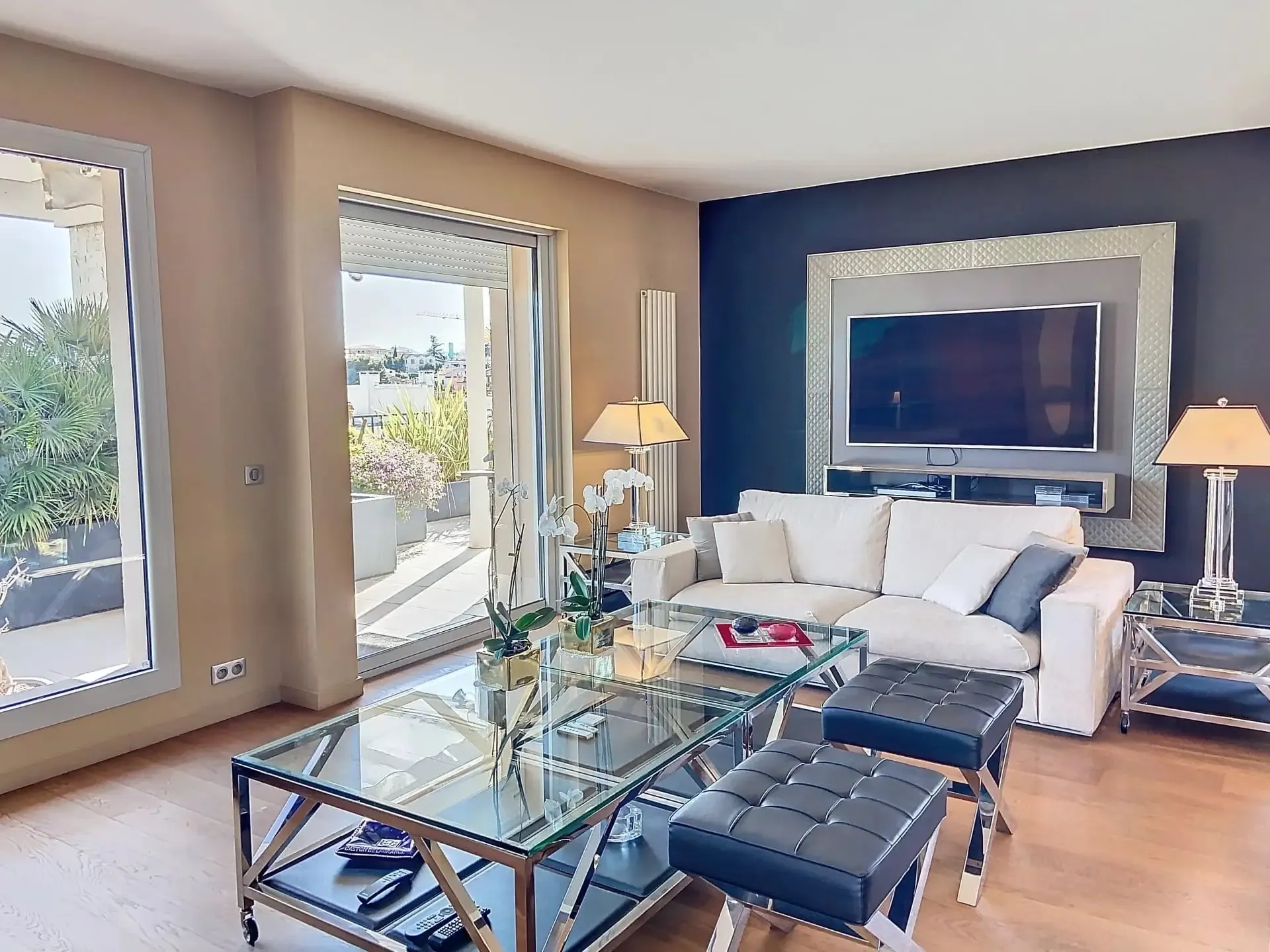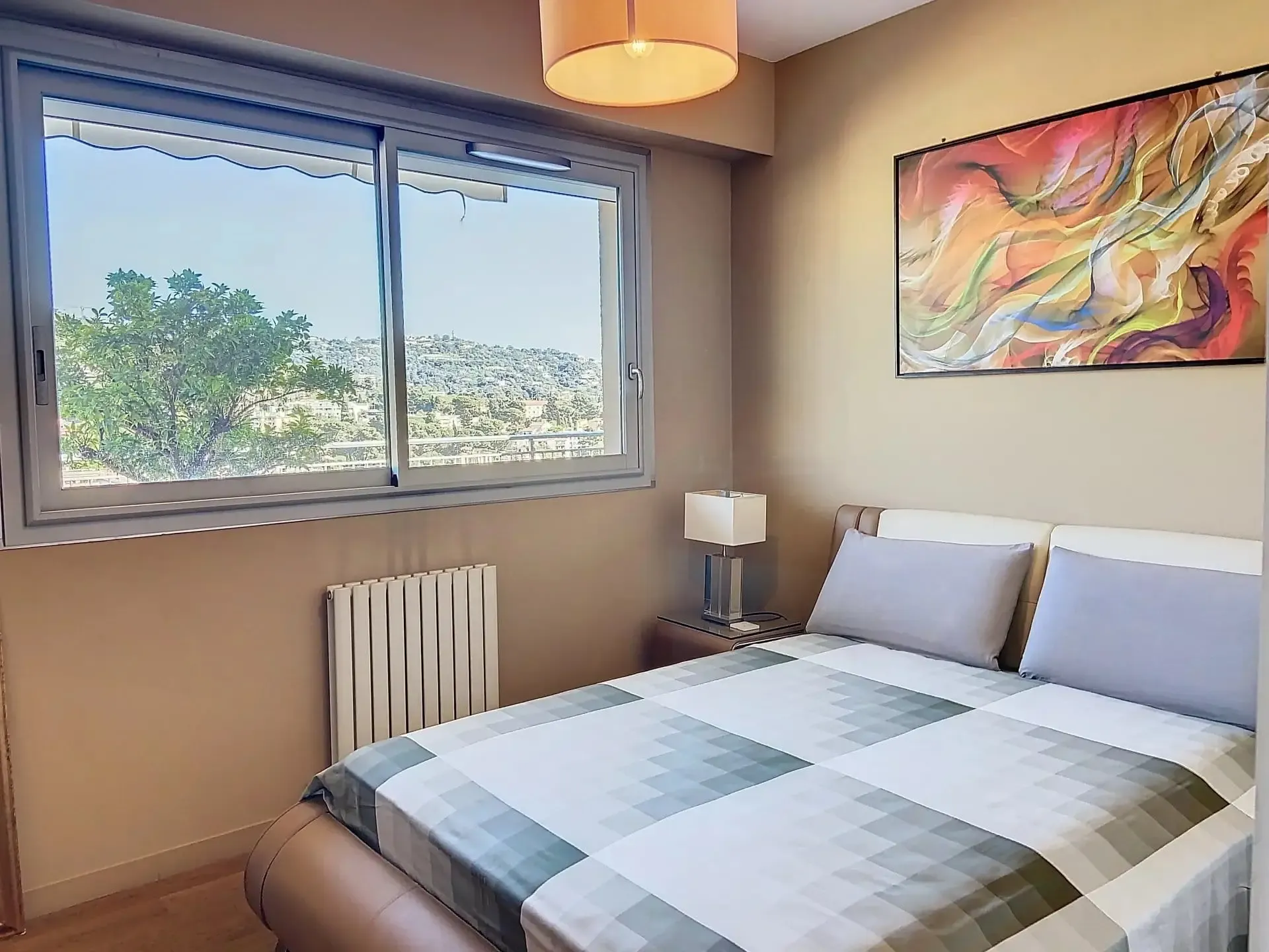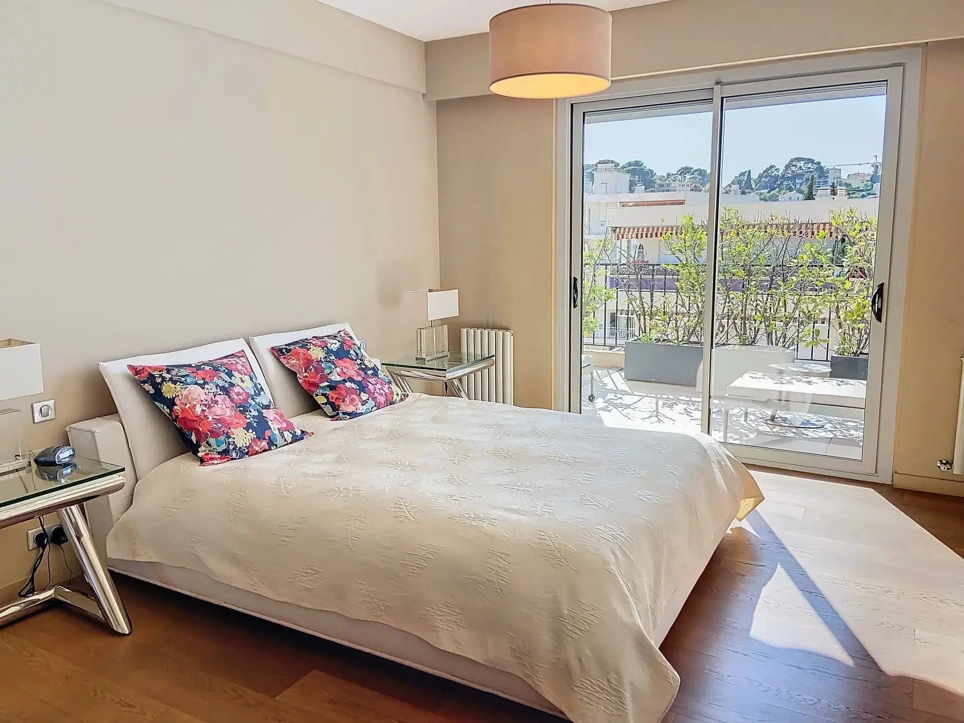 Situé aux portes de Cannes, dans un quartier résidentiel proche de toutes commodités, ce magnifique appartement 5 pièces de 165 m² occupe tout le dernier étage d’une résidence de standing. Il bénéficie d’une exceptionnelle terrasse arborée de 164 m², véritable jardin suspendu avec vue panoramique sur les collines de la Californie à l’Est, et un aperçu mer au Sud.
