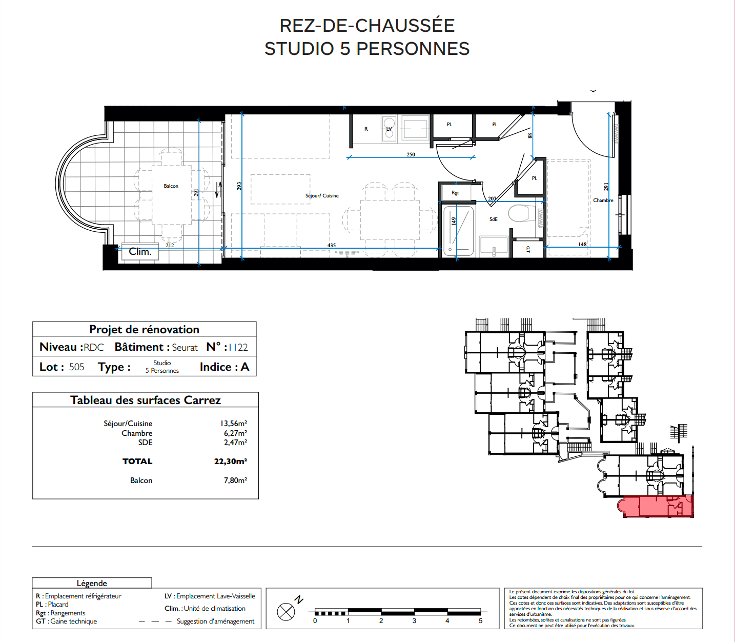 Appartement studio 5 personnes, d’une superficie de 22 m2.